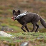 A dark morph Arctic Fox (or ‘Blue Fox’) that helped itself to kittiwakes at Pyramiden (Image by Mike Watson)