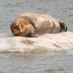 The Bearded Seals in Kongsfjorden often have rusty pelts from foraging on the iron-rich sea bed there (Image by Mike Watson)