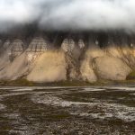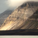 Rays of sunlight catch some carboniferous era rock strata in Isfjorden (Image by Mike Watson)