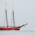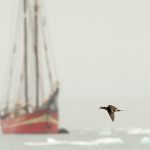 A drake Long-tailed Duck flies past SV Noorderlicht (Image by Mike Watson)