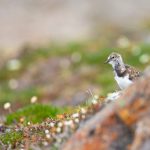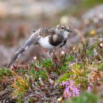 A Ruddy Turnstone chick among the Arctic flora at London (Image by Mike Watson)