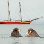 Walruses frolicking in front of SV Noorderlicht (Image by Mike Watson)